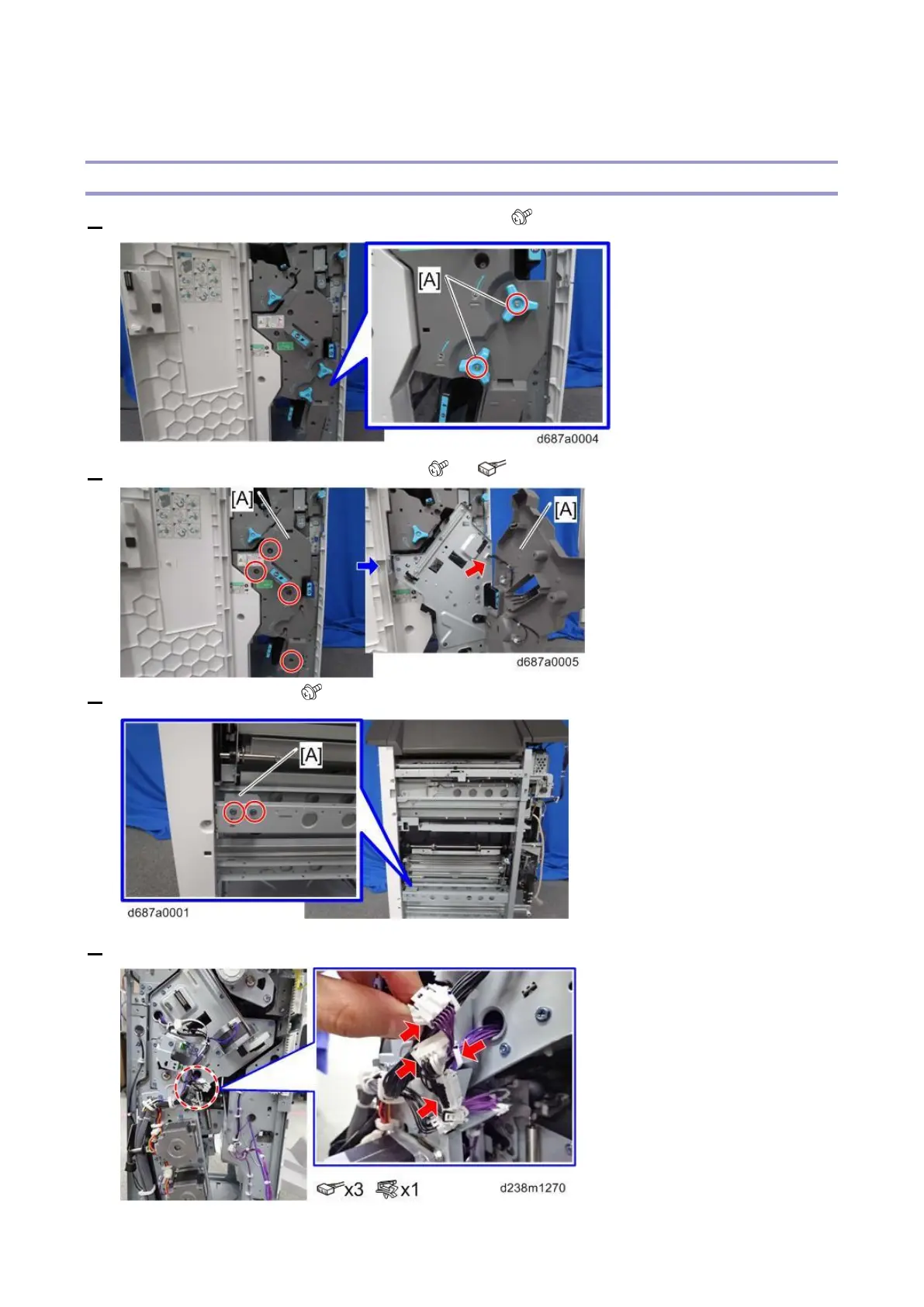 2. Remove the booklet stapler unit cover [A] ( x4, x1).
