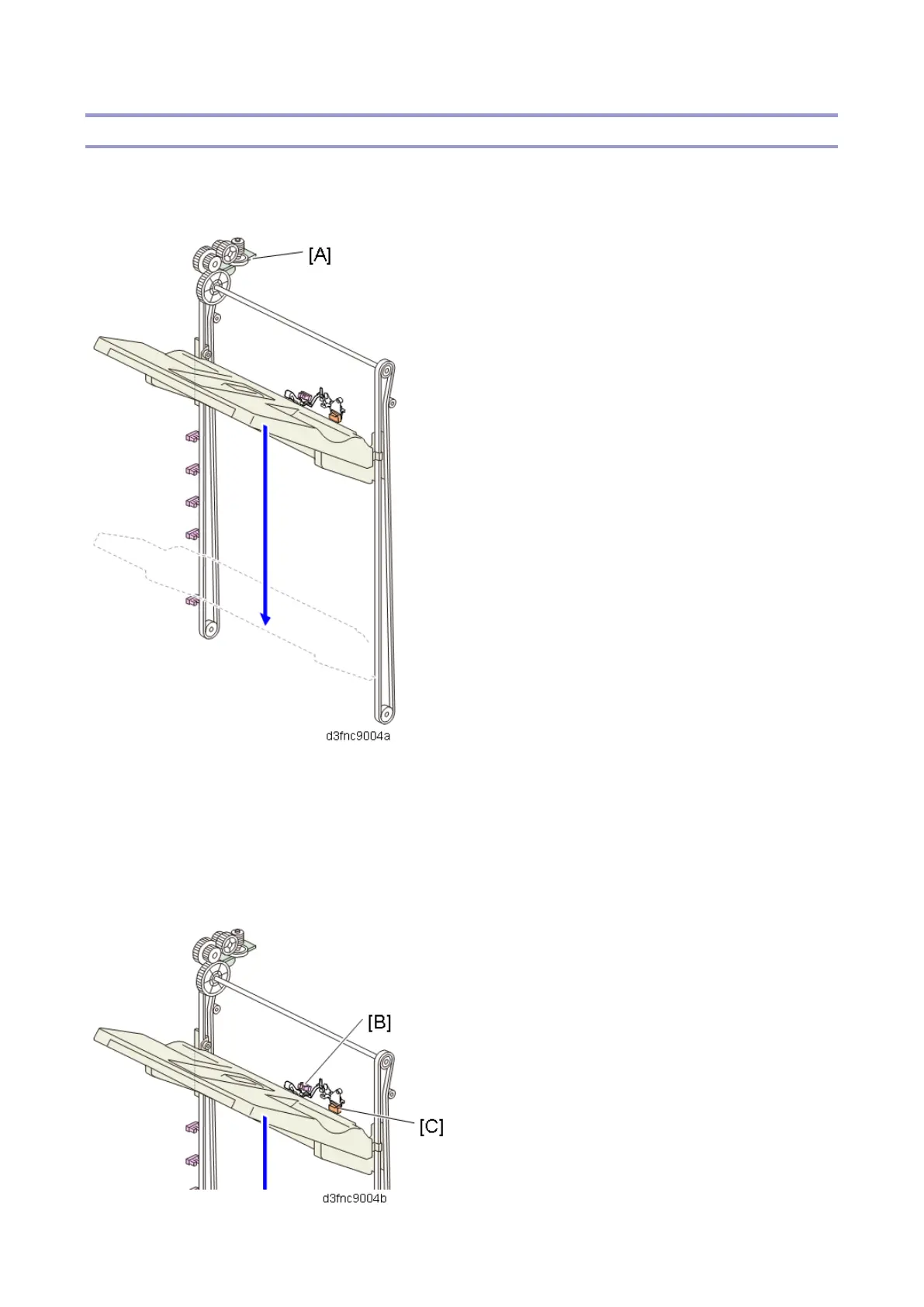 (interlock switch) [C] is installed. When the upper tray moves up to the upper position but doesn’t stop,
