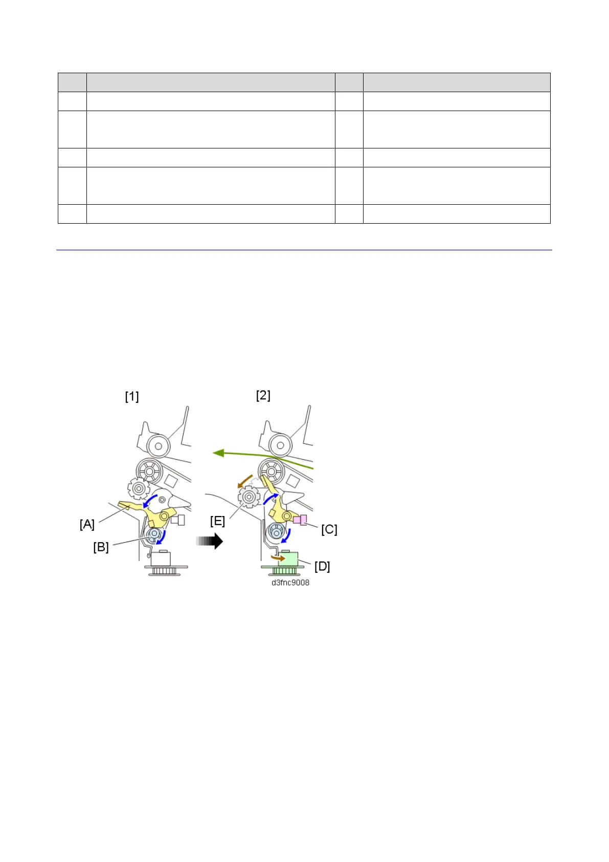 4. The Paper Stacking Holder Motor (DCM8) rotates the paper stacking holder cam [C] to drop the