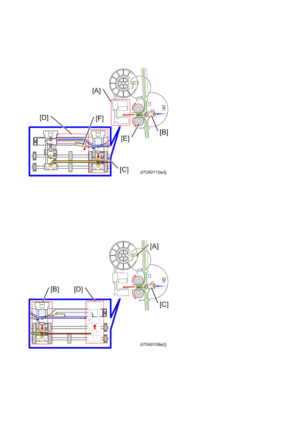 roller presses on switch plate 2 [D] which directs it down into the lower path. When pressure is applied