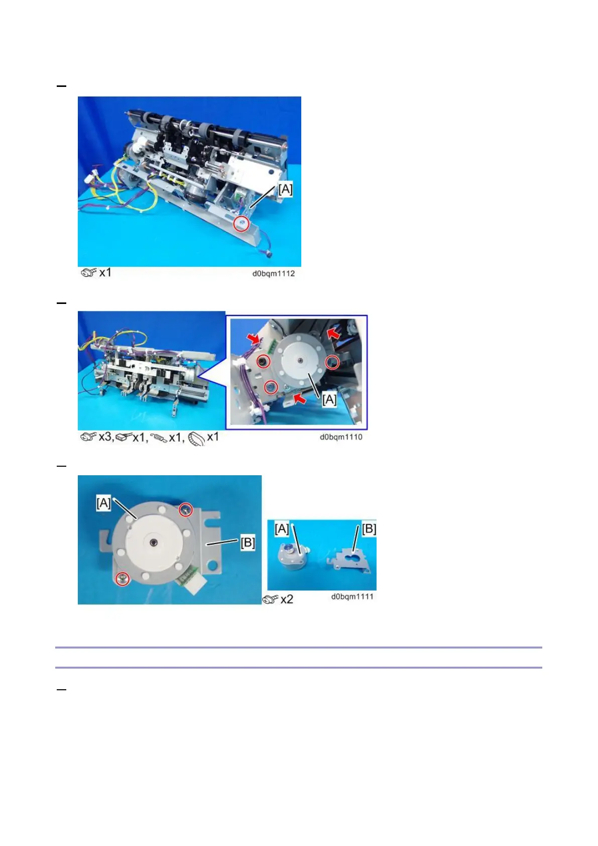 4. Remove the Leading Edge Guide Motor (STM6) [A] from the bracket [B].