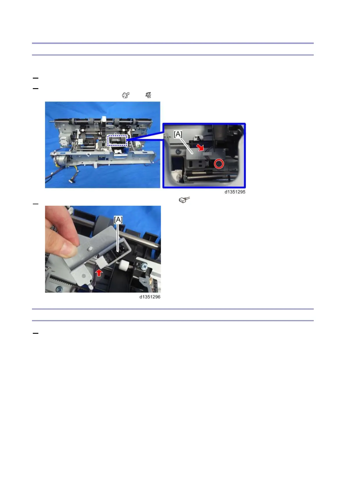 2. Remove the Staple Tray Paper Sensor (S31) together with the bracket [A] from the part with the