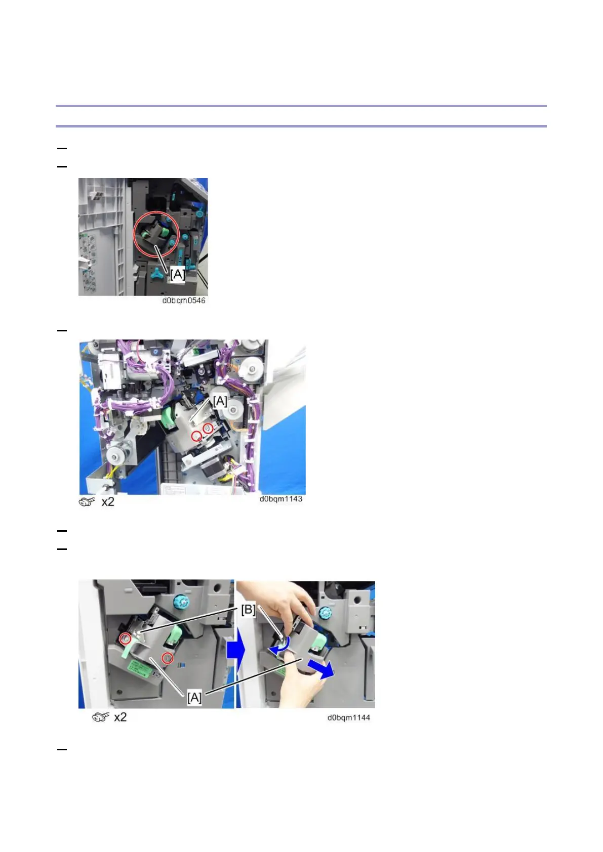 6. Remove the fixing bracket [A] of the stapler unit.