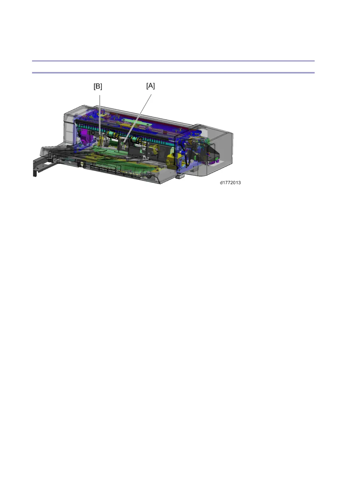 When the paper exit full sensor 1 [A] or the paper exit full sensor 2 (staple) [B] detects paper, the paper