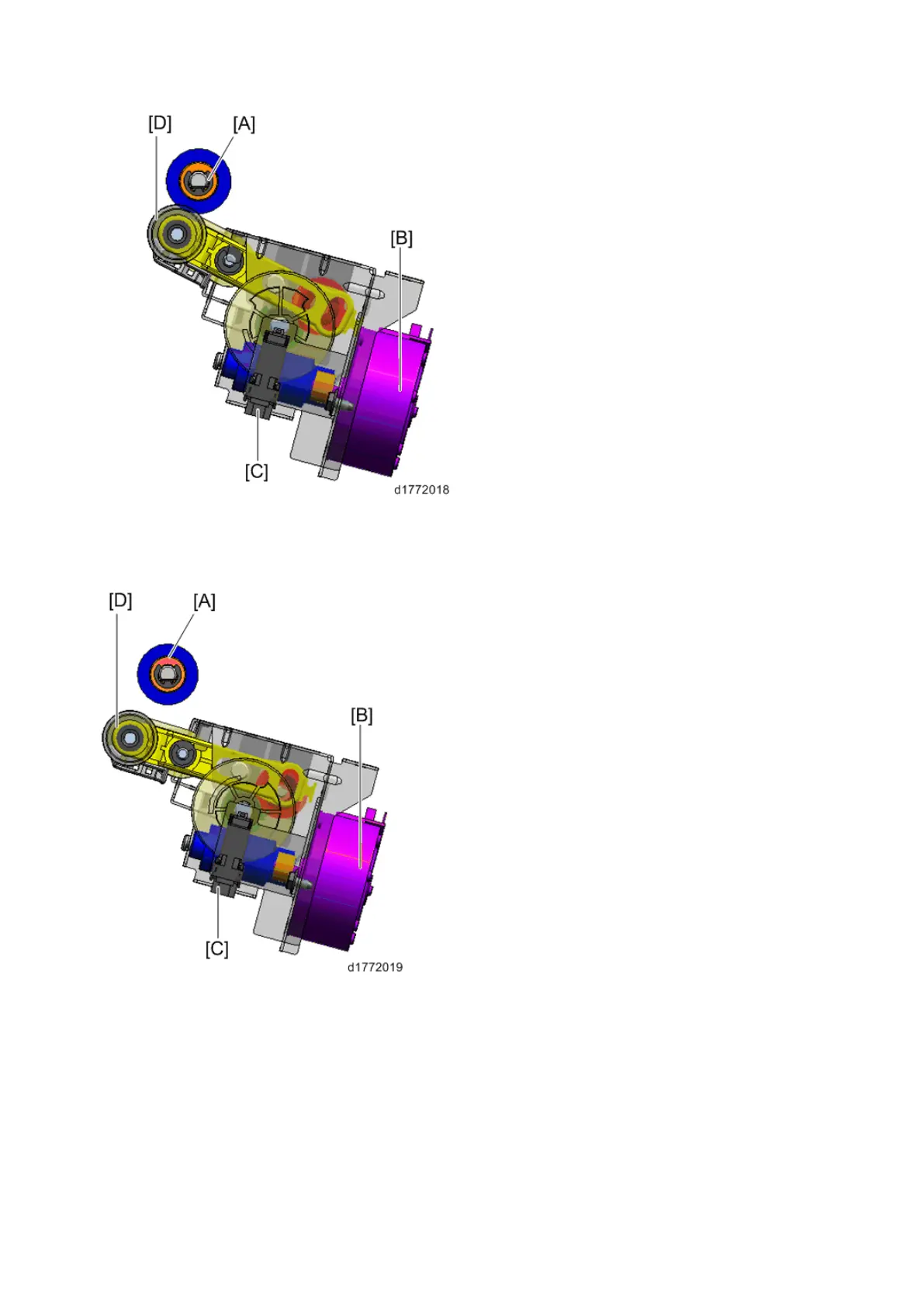 The paper exit pressure motor [B] lowers the pressure, and the position of the paper exit belt