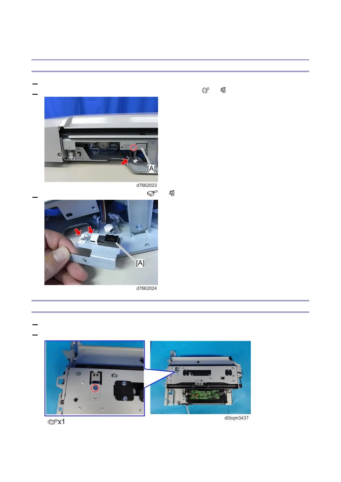 2. Remove the entrance sensor [A] together with the bracket ( ×1, ×1).