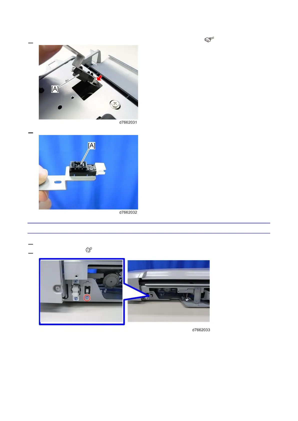 3. Remove the sub-scan registration sensor [A] together with the bracket ( ×1).