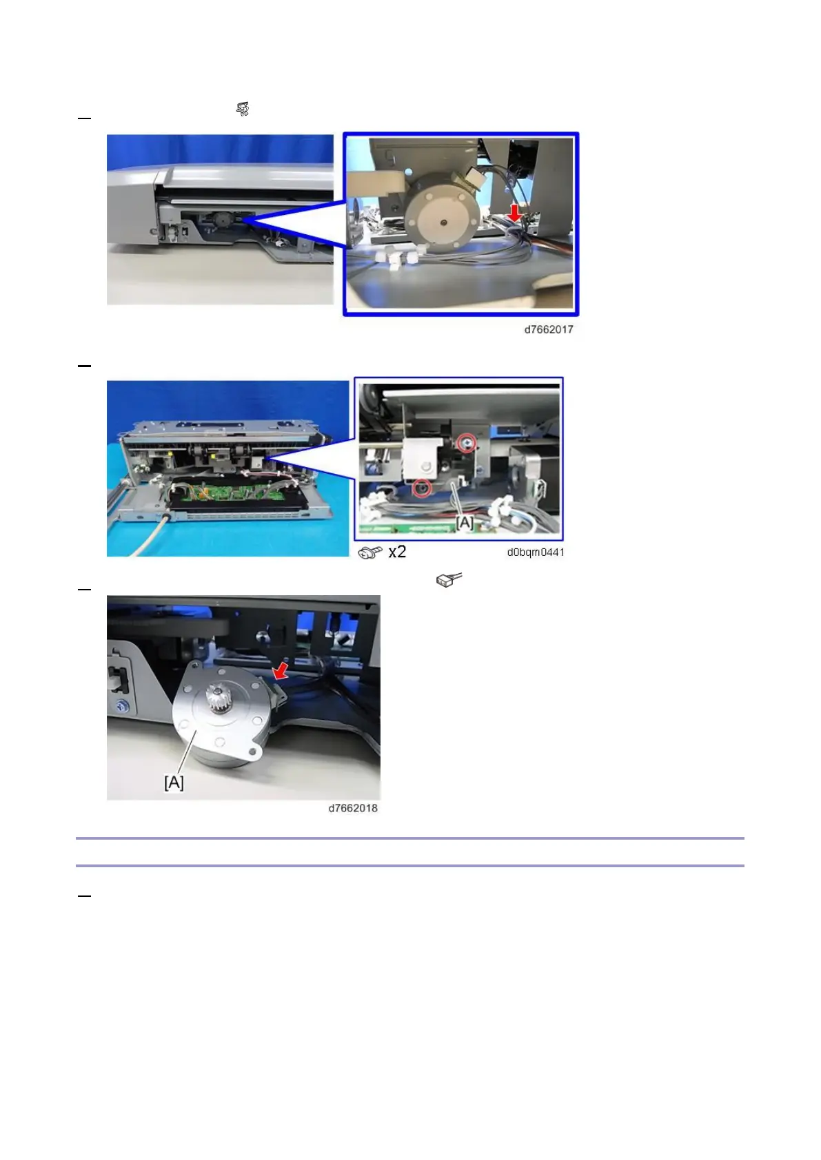 4. Remove the paper exit pressure motor (STM4) [A] ( ×1).