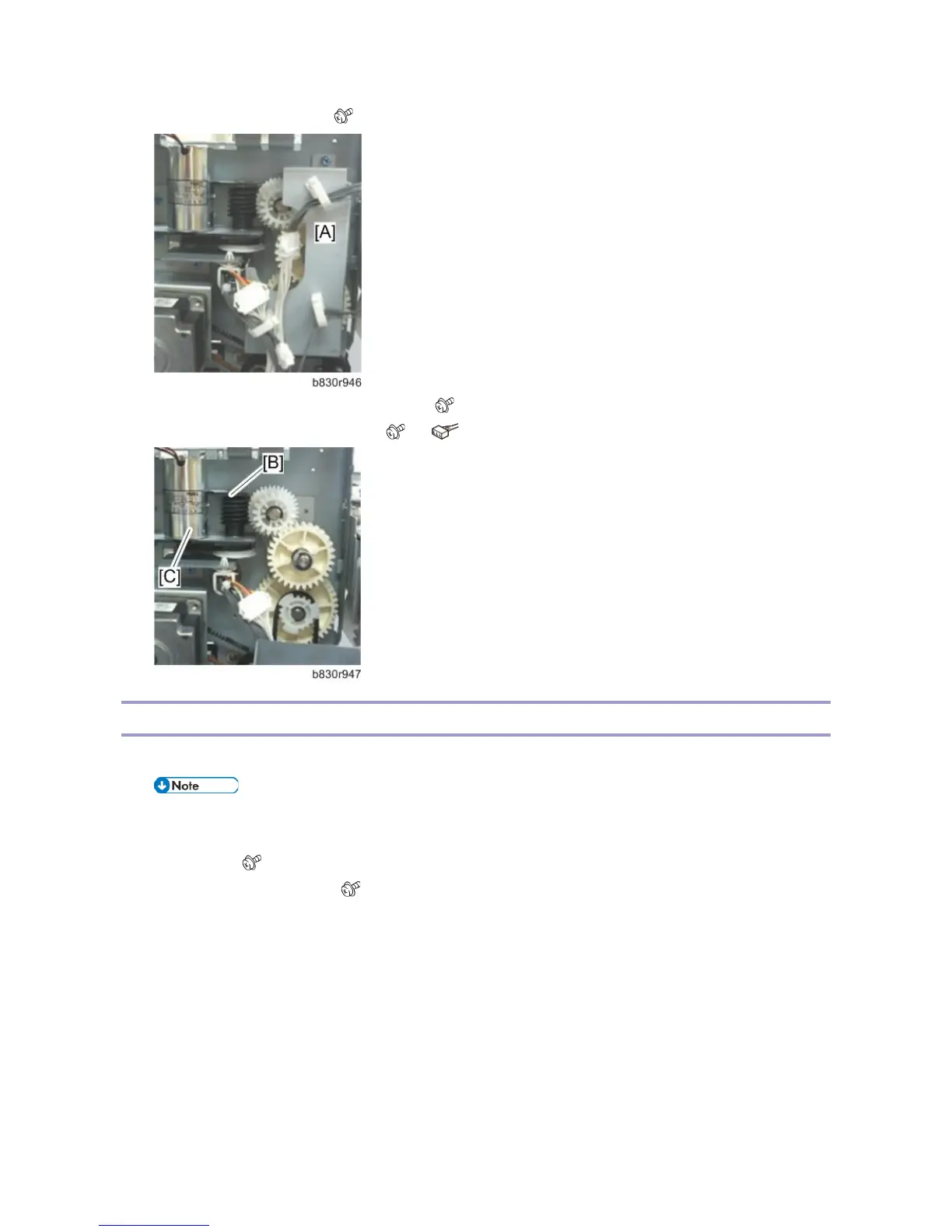 4. Remove the shift tray lift motor [C]. ( x2, x1, Timing belt x1)