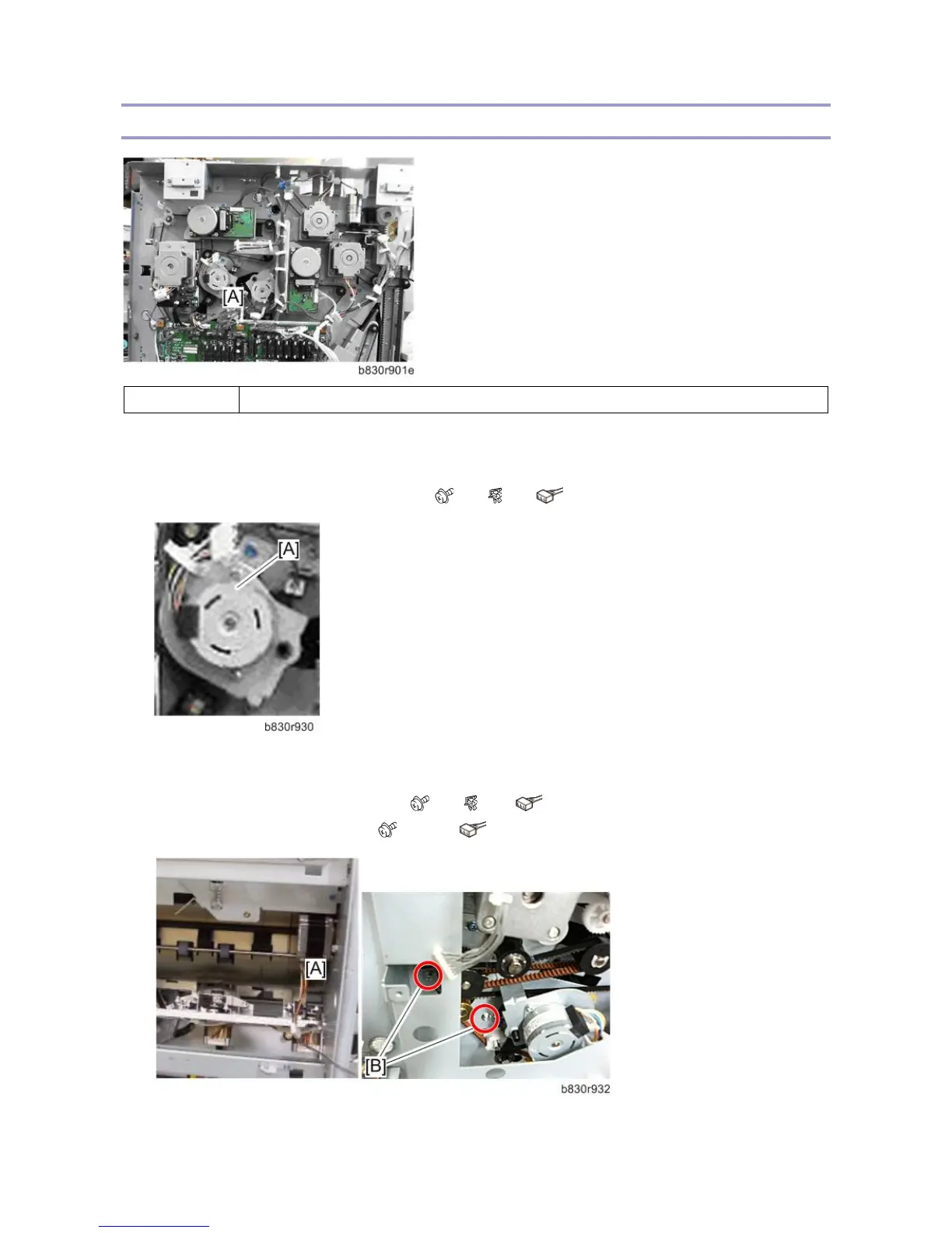 2. Remove the stapler junction gate motor [A]. ( x2, x1, x1)