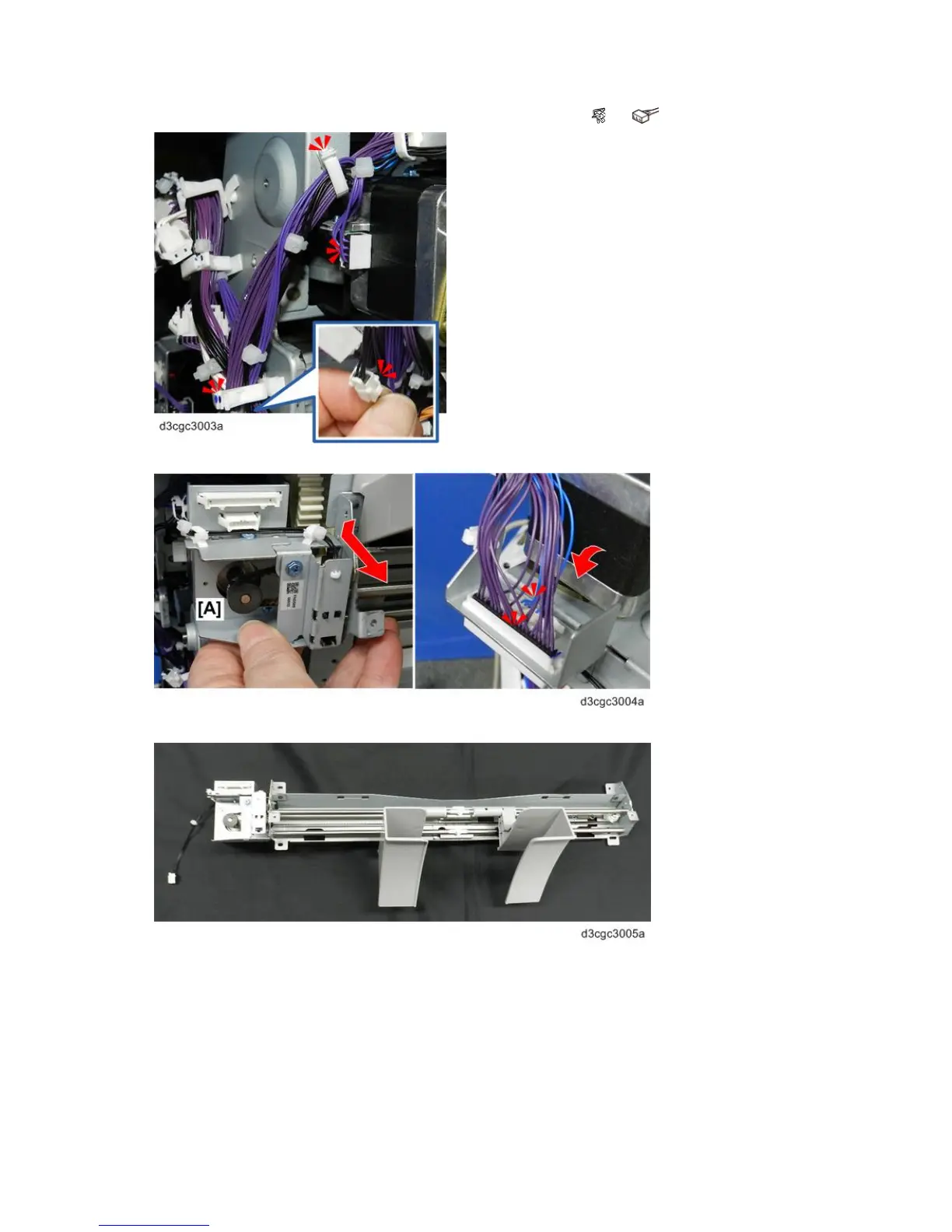 8. Tilt the paper guide unit toward you, and then disconnect the harness of motor bracket [A].