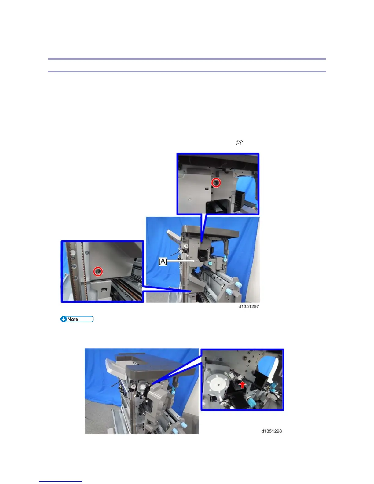 2. Pull out the booklet stapler unit, and remove the inner upper cover [A]. ( x 2)