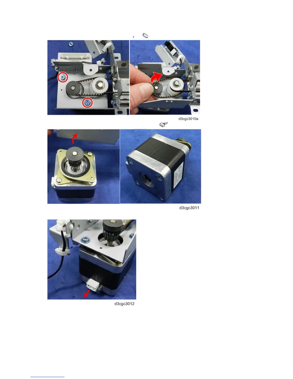 4. Unfasten the motor, and disconnect the belt ( x2, x1).