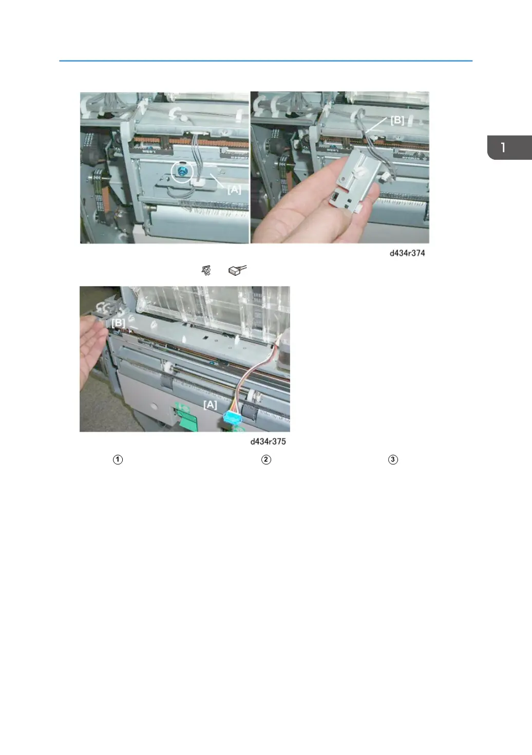 4. Pull belt until you can see through the hole that the edge of the actuator below the hole is