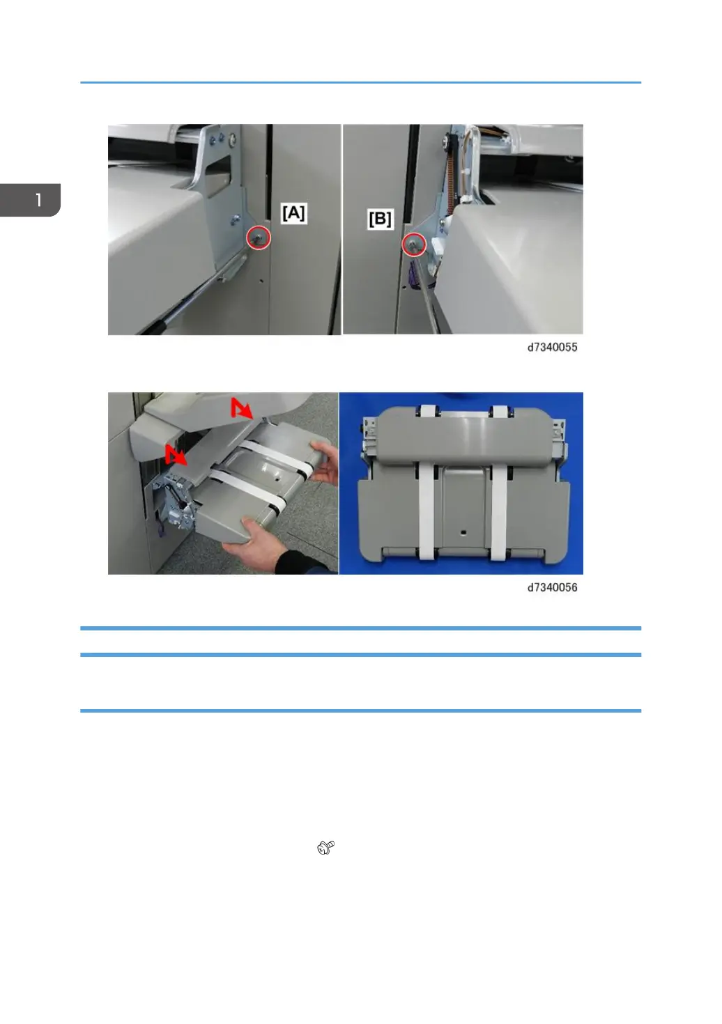 2. Remove booklet stapler unit cover [A] ( x2)