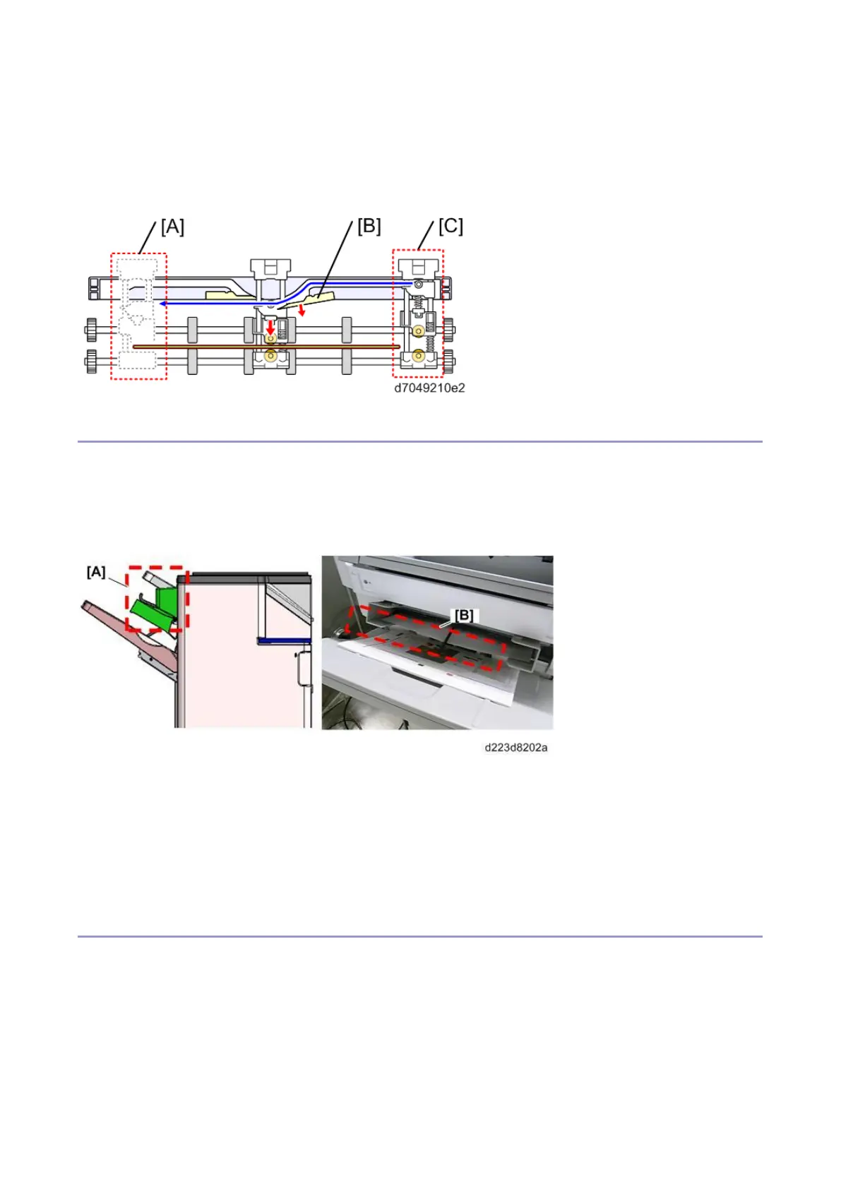 paper guide unit [A] prevents the copies from becoming entangled on the shift tray.
