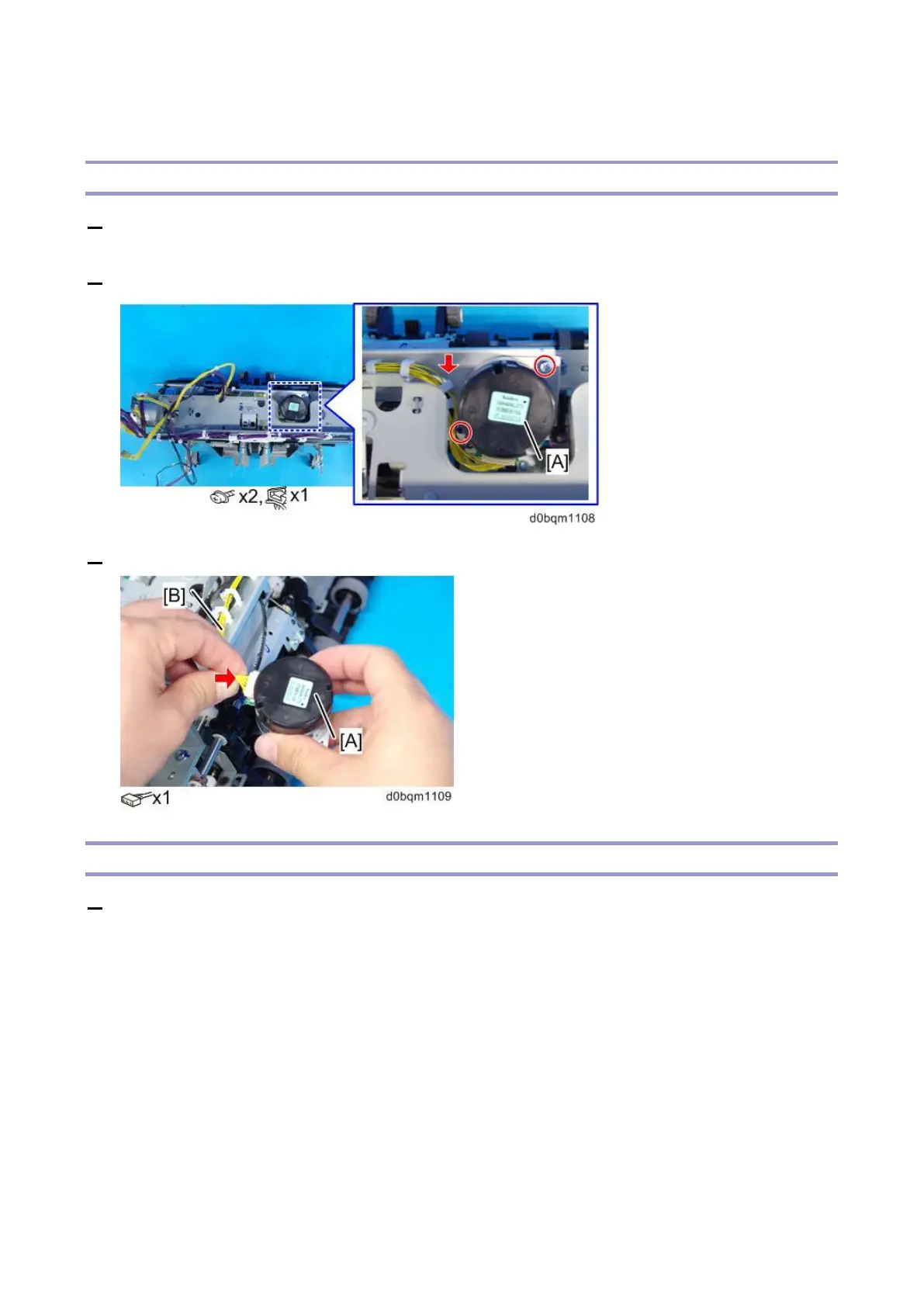 3. Disconnect the harness [B] from the stacking sponge roller lift motor [A].