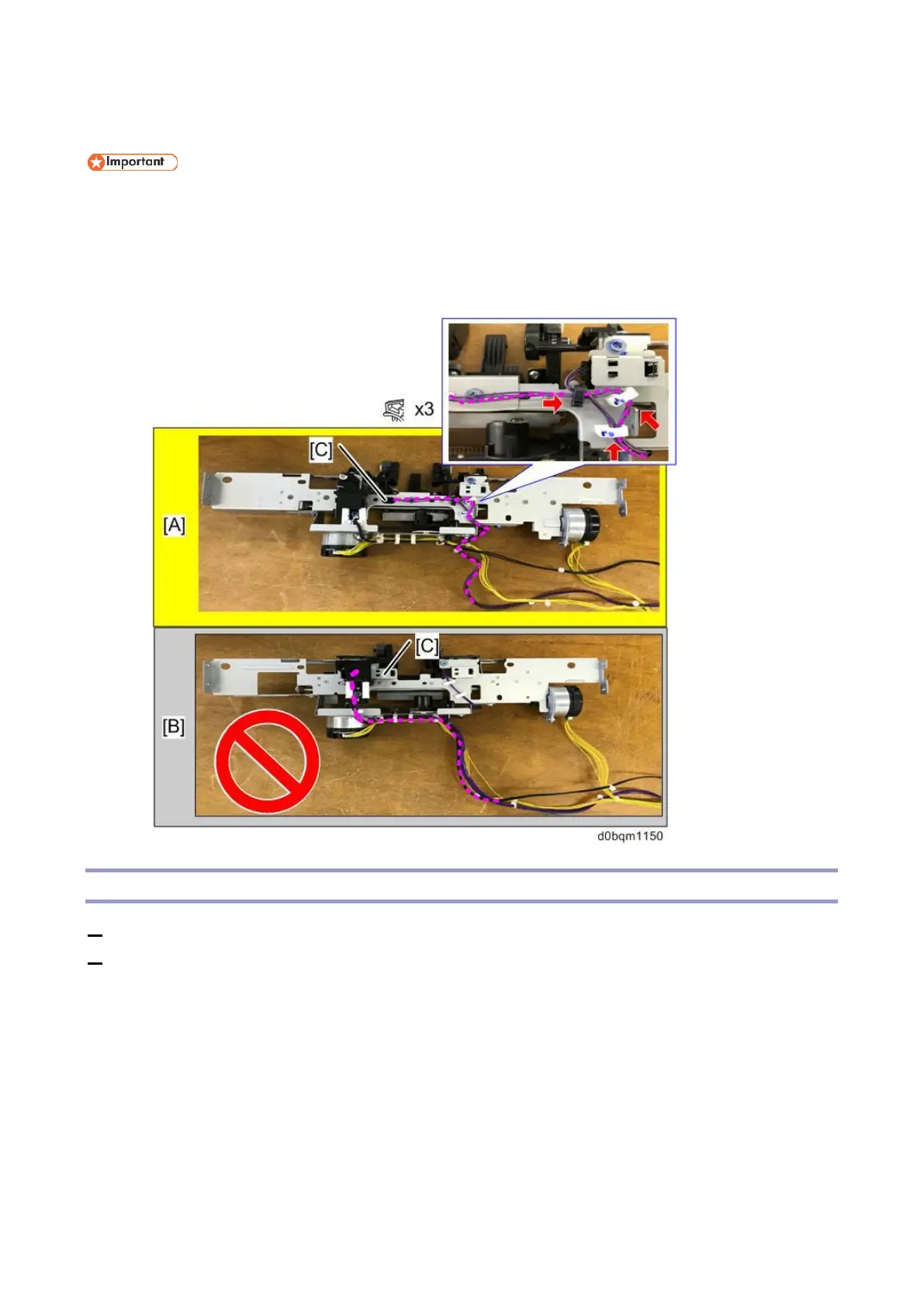 • When you release the harness around the shift tray paper sensor [C] for replacing parts such