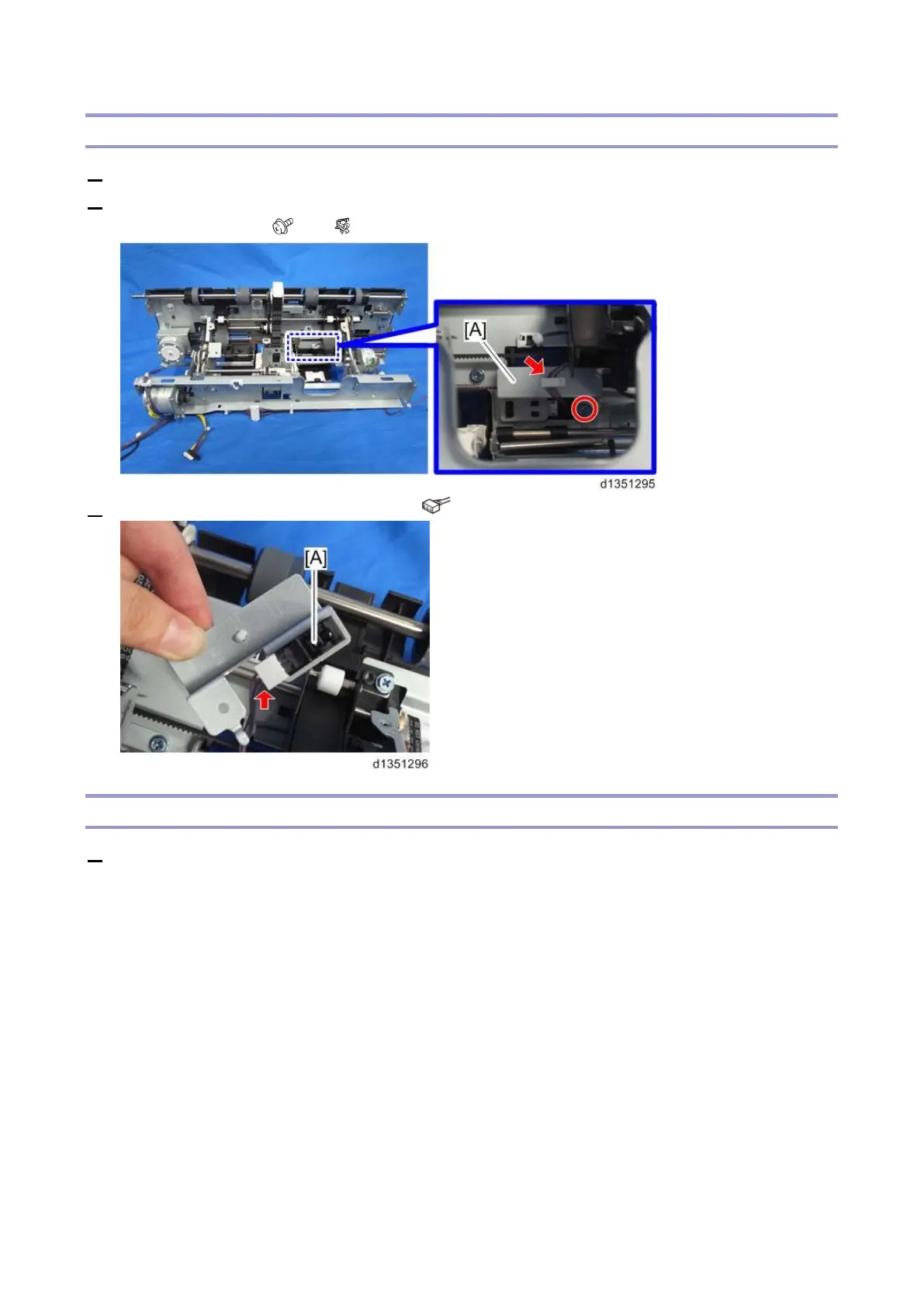 3. Remove the staple tray paper sensor [A] ( x 1).