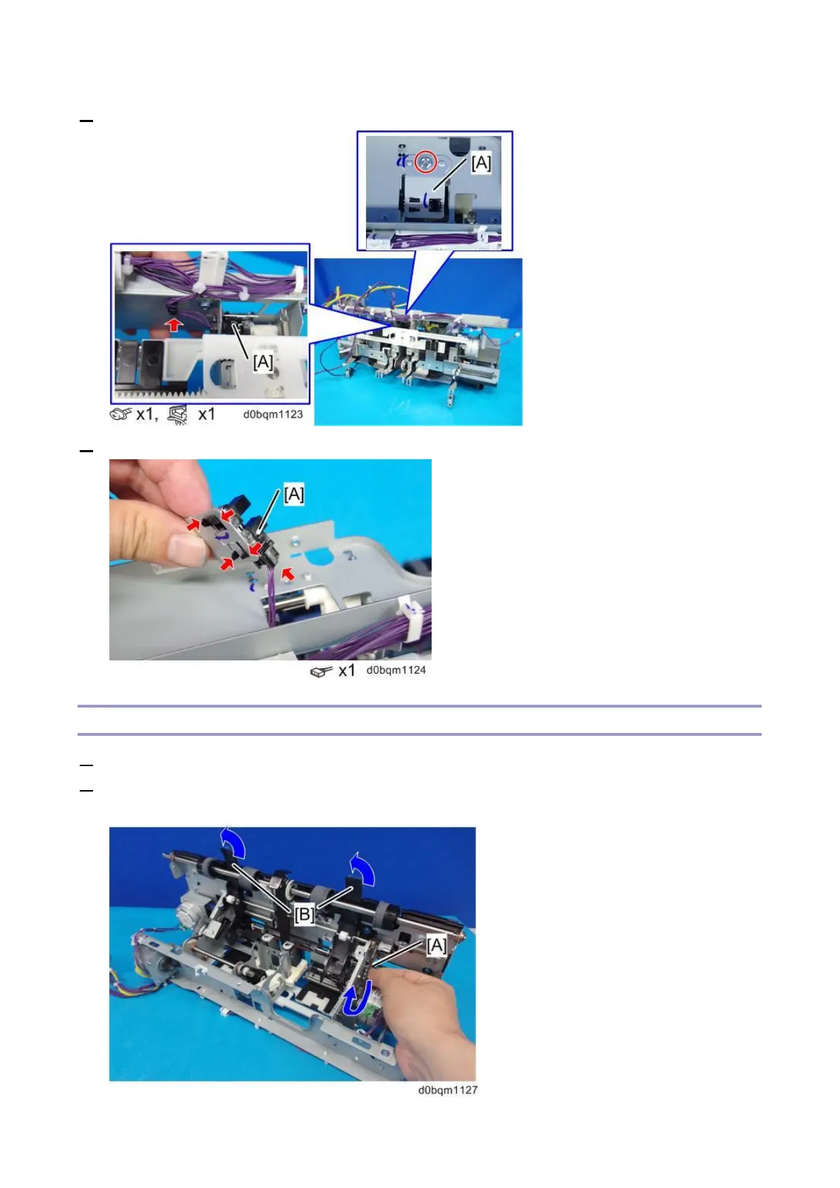 2. Remove the bracket with the feed-out belt HP sensor [A].