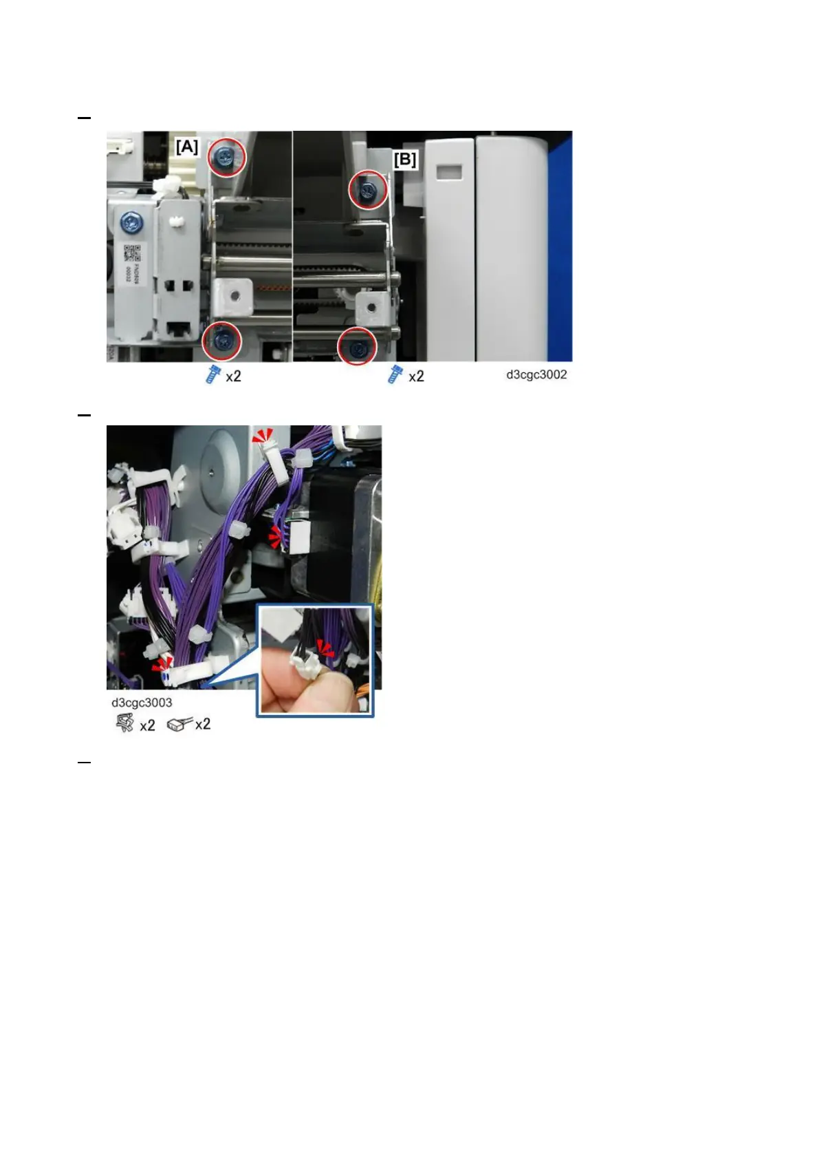 6. Disconnect the front end of the paper guide unit bracket [B].