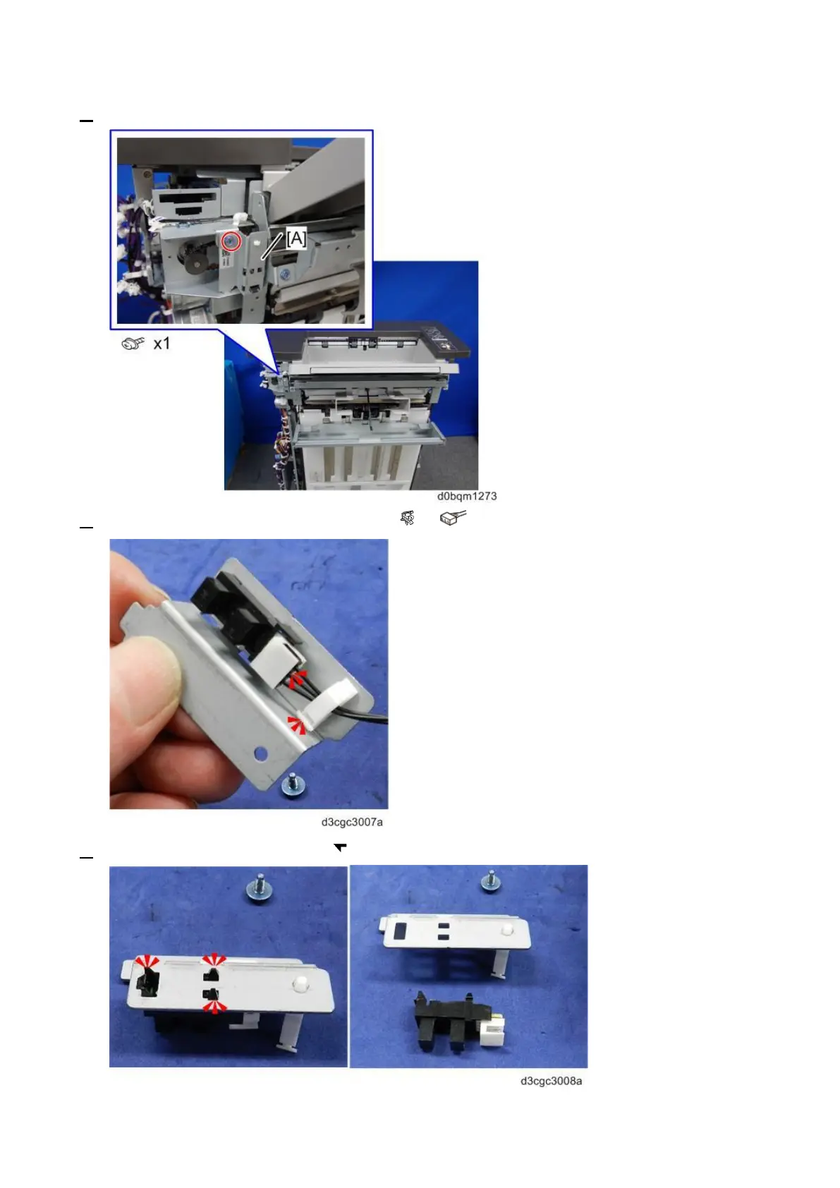 2. Remove the bracket [A] with the paper guide HP sensor.