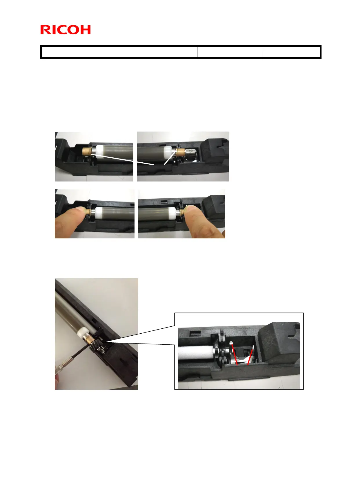 4. Put the drum charge roller back in its case in two steps. First, place the drum charge