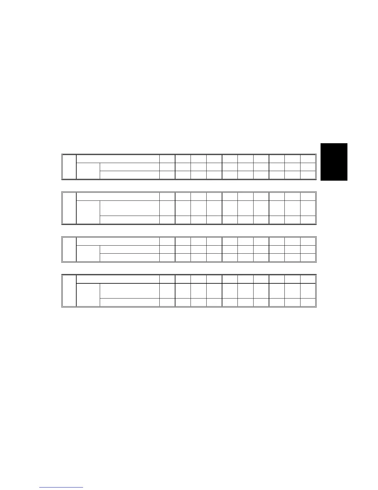 The following tables show the adjustment reference for gamma correction. The