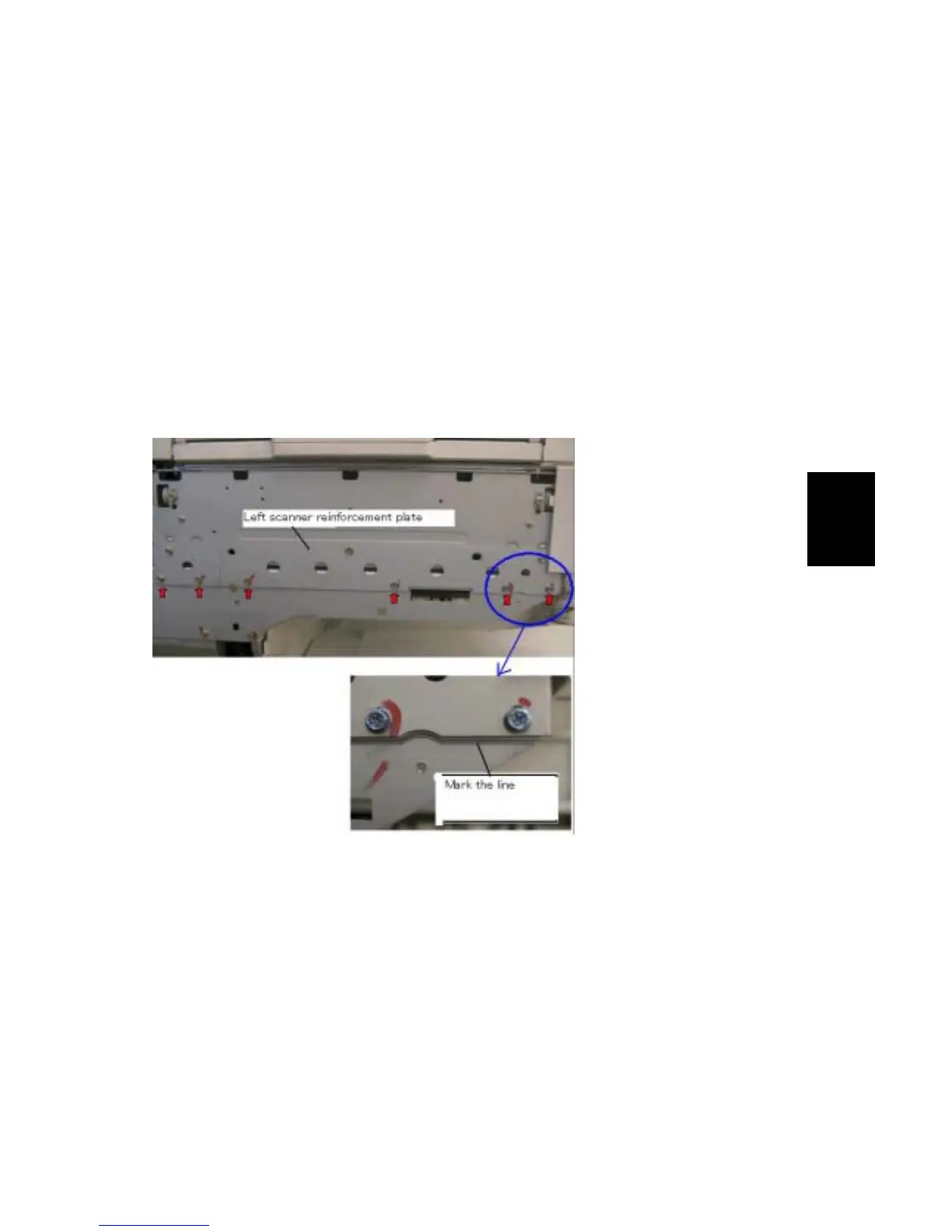 2. Mark the position of the left scanner reinforcement plate by drawing a line