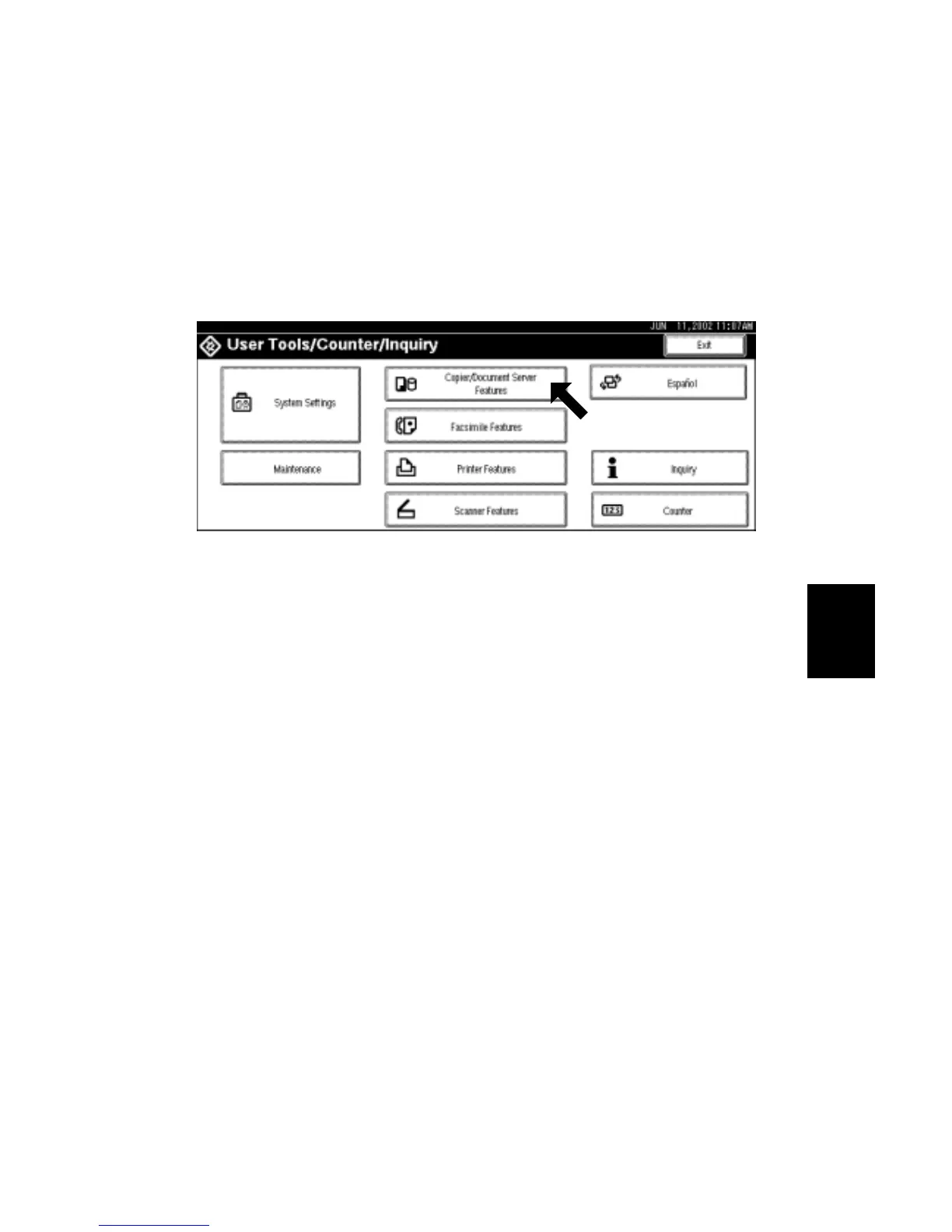 NOTE: Hold down the key before touching Copier/Document Server