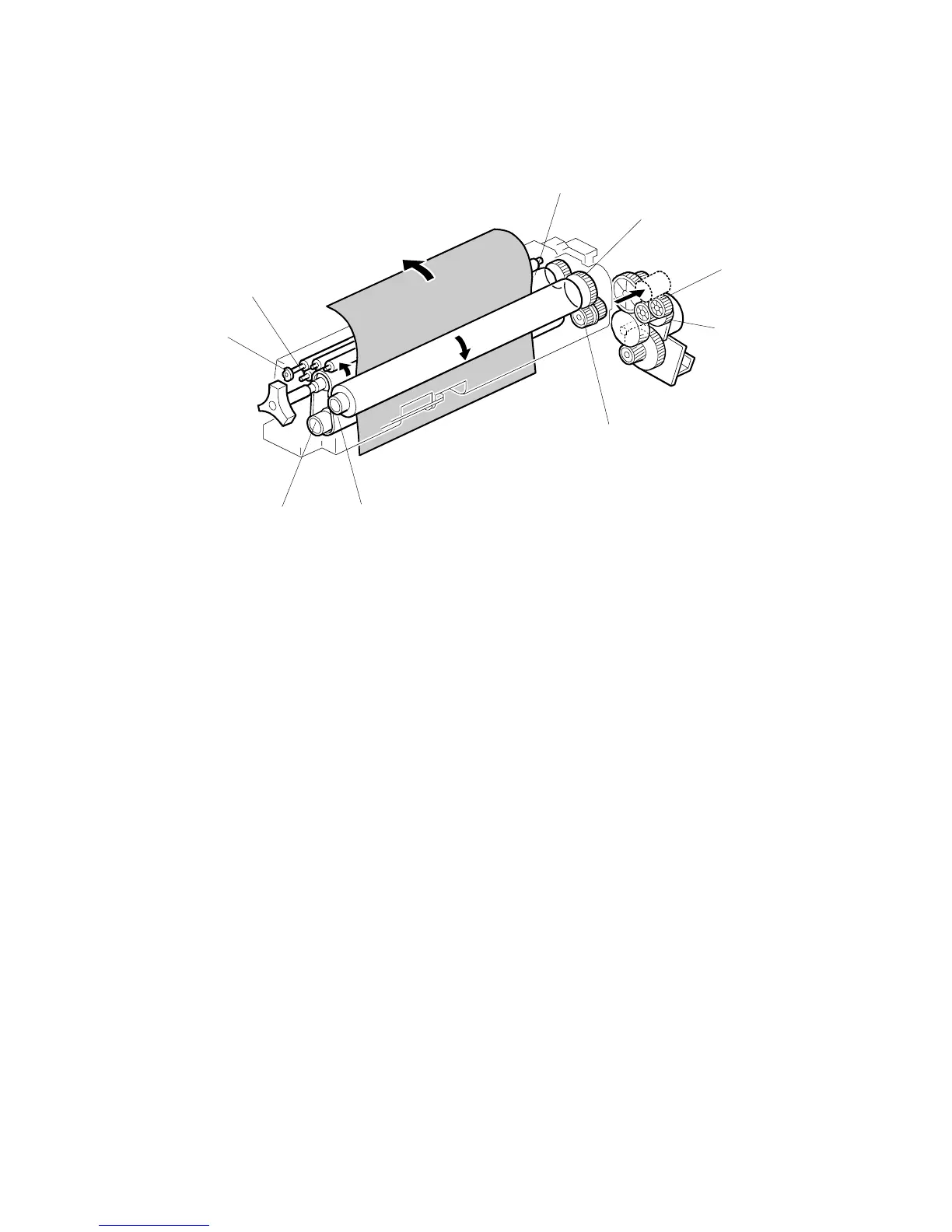 The fusing unit motor [D] drives the fusing unit through gears [C] and [E].