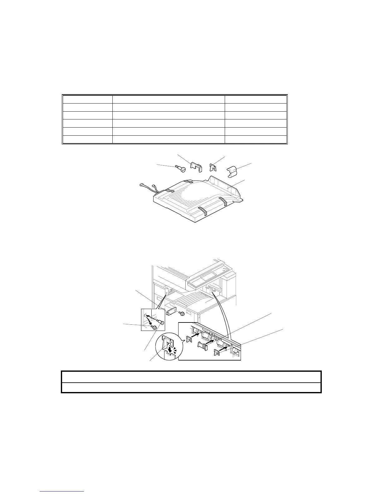 4. Install the large paper guide [D] and two small paper guides [E], as shown.