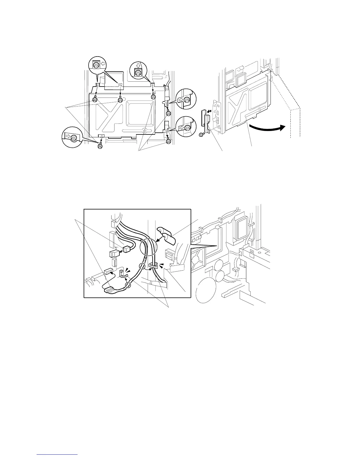 12. Attach the harnesses with clamps [E]. Then attach the core [F].