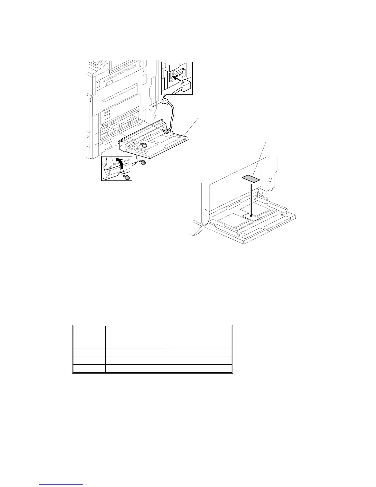 3. Install the by-pass tray unit [A] (! x3, " x1).
