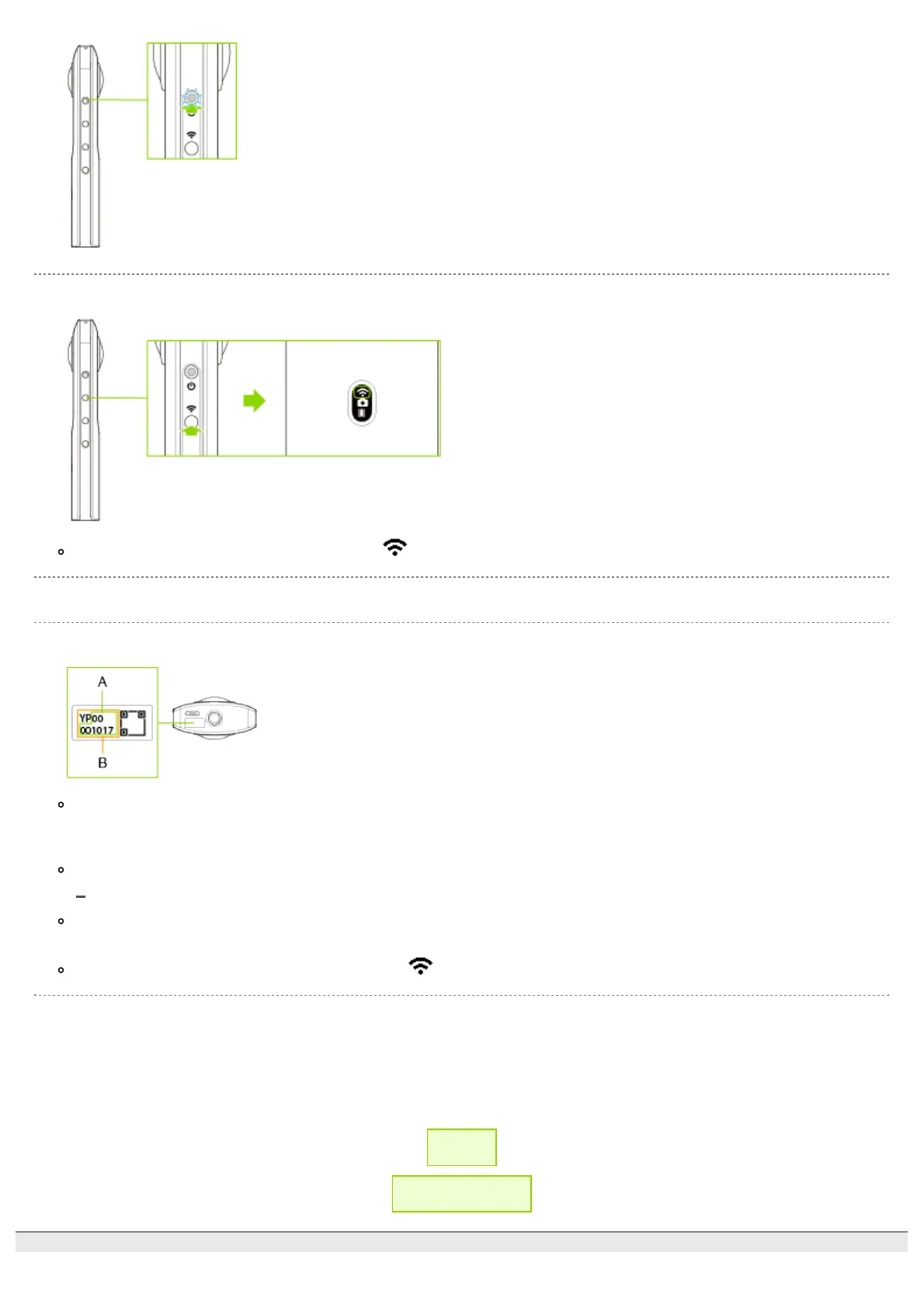 The SSID is “THETA + Serial number indicated by (B) + .OSC” (in this case “THETAYP00001017.OSC”). The password