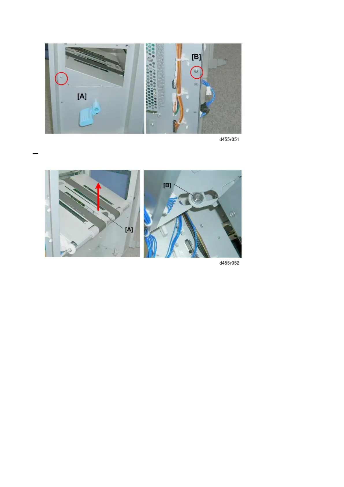 4. Lift the transport unit [A] with both hands. Remove the roller at the rear, and remove the transport
