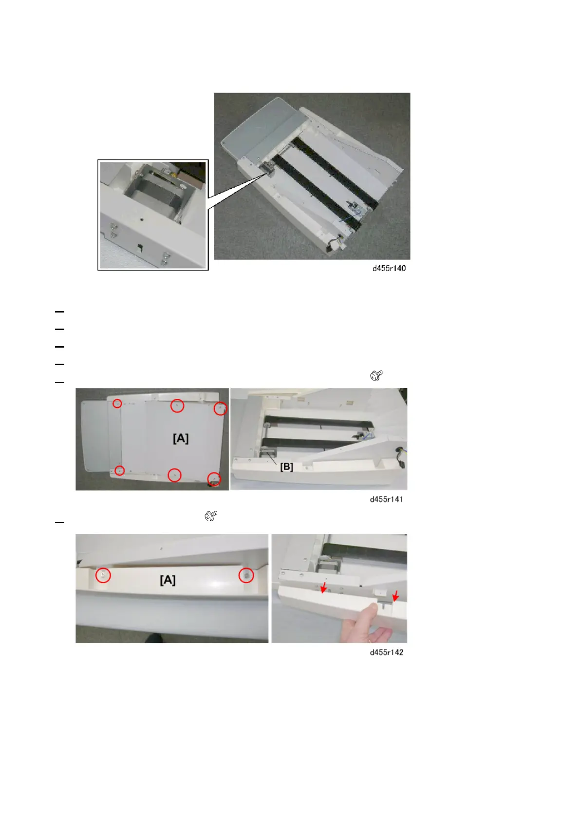 5. Remove the bottom cover [A] so that you can see the motor [B]. ( x 6)