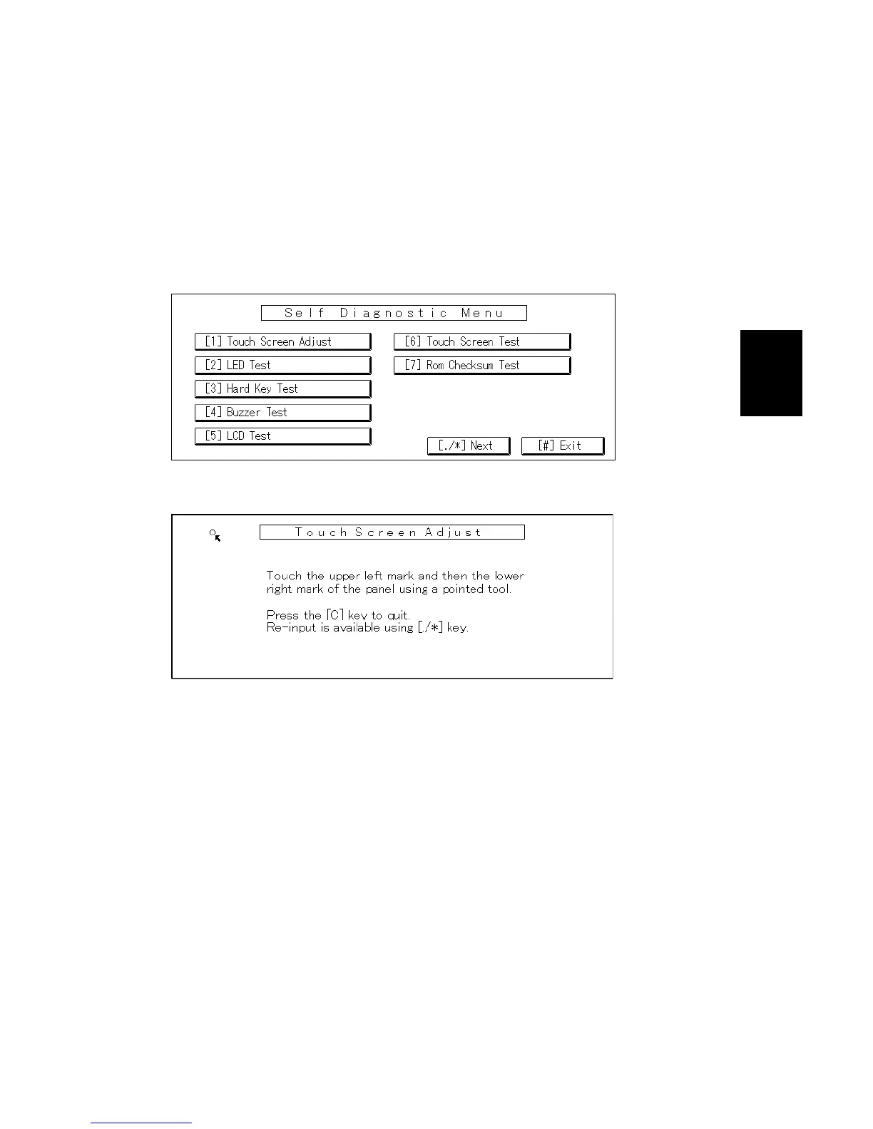 7. Touch [#] Exit on the screen to close the Self-Diagnostic menu and save the
