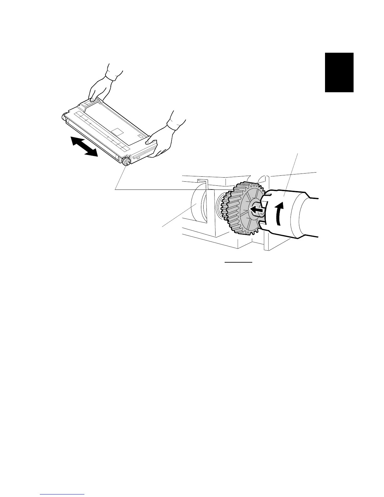NOTE: 1) Do not touch the development roller or the development roller gear.