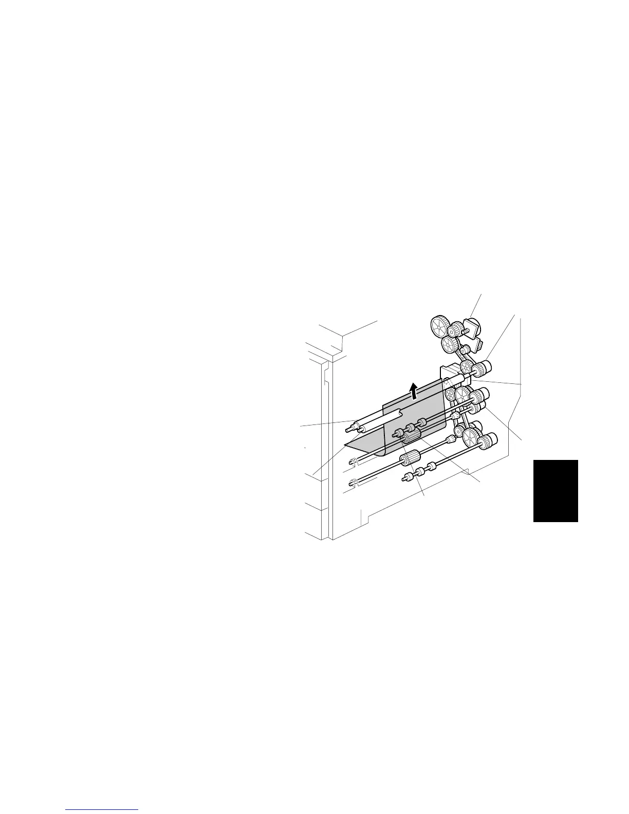 The idle roller [G] facing the registration roller does not have any drive gears. It