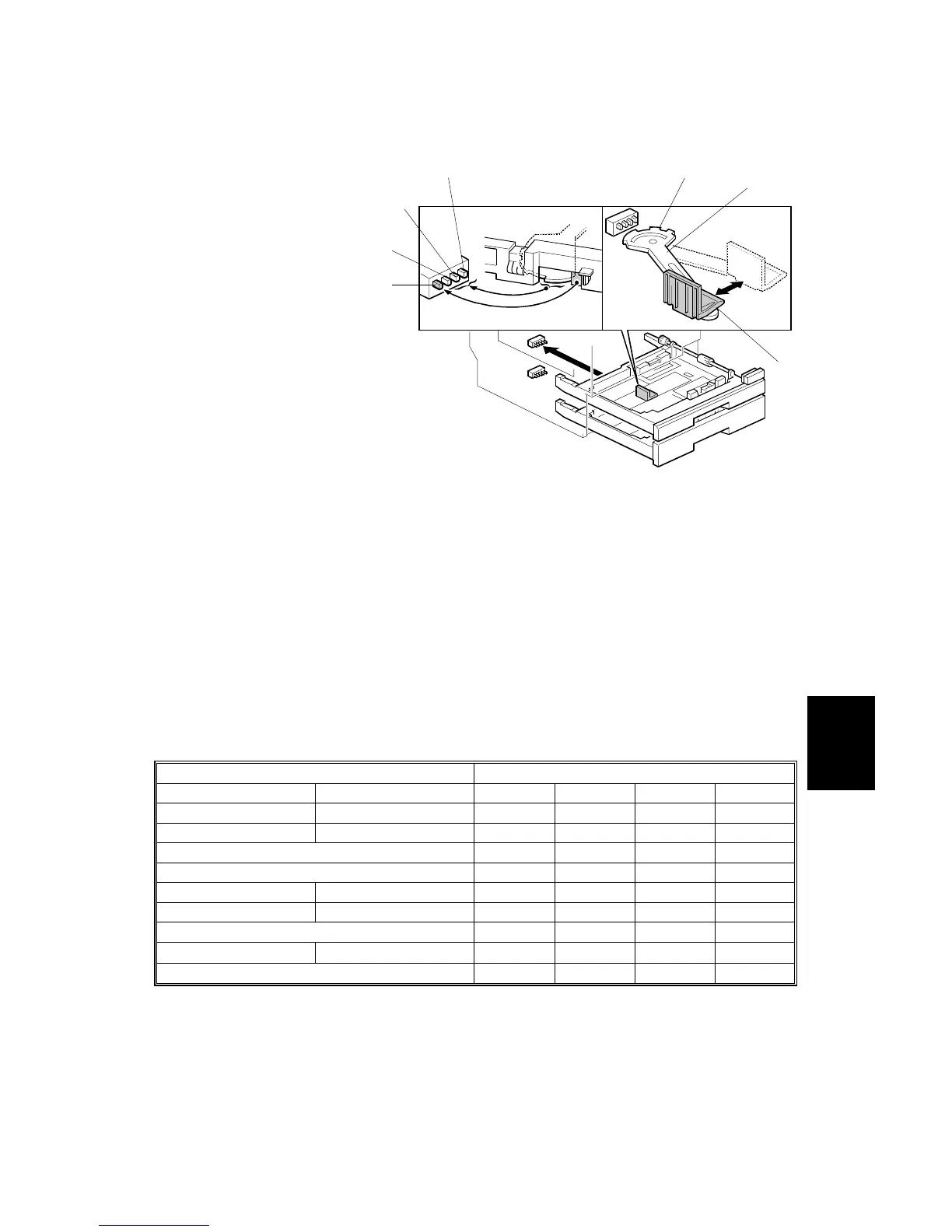 the actuator [E] into contact with the paper size switches [B]∼[D].