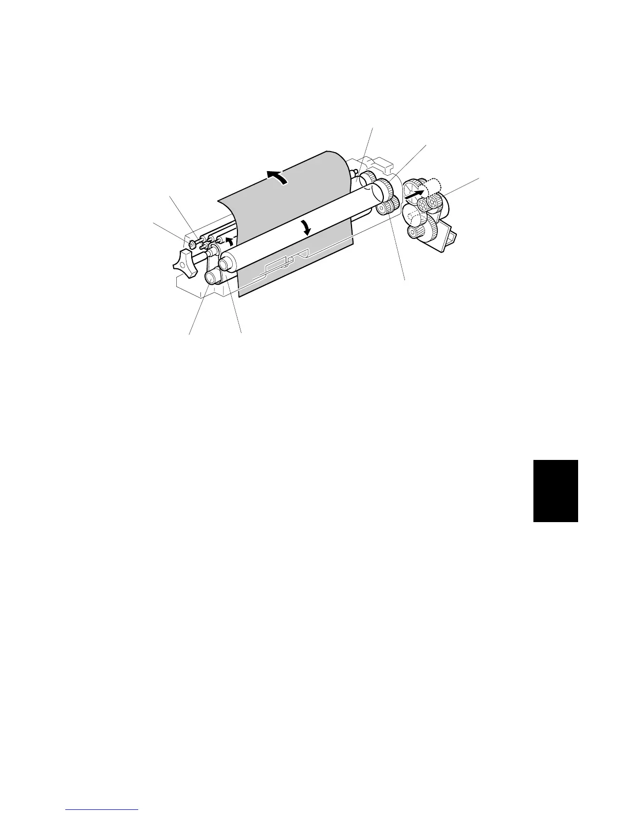 When the right cover is open, gear [C] moves away, which allows jammed paper to