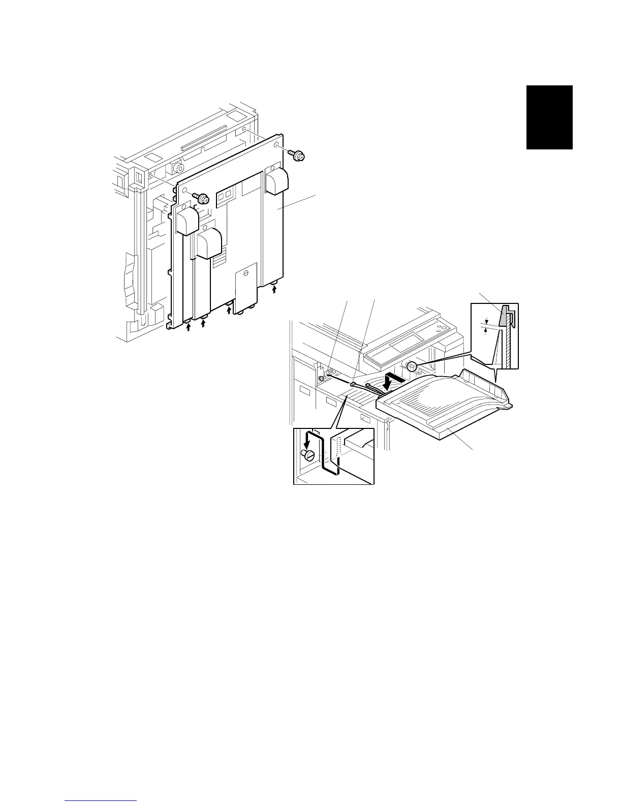 NOTE: 1) Set the shift tray on the stepped screw.