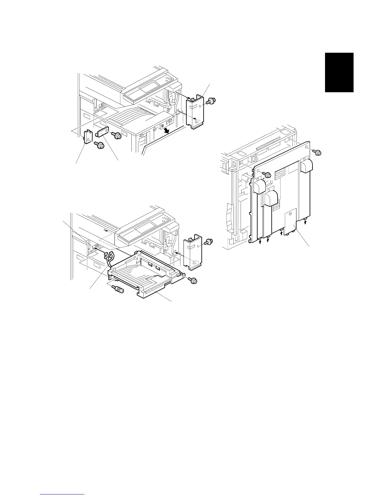 6. Pass the harnesses [D] through the opening [E], and install the bridge unit [F]