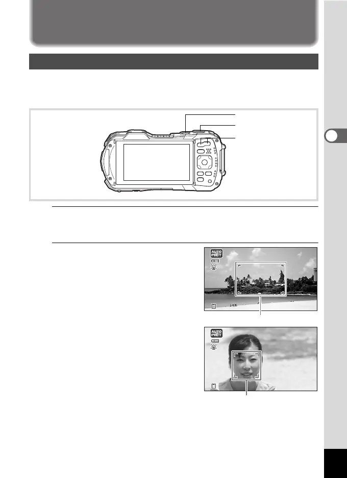 The camera turns on and is ready to take still pictures. In this manual, this is