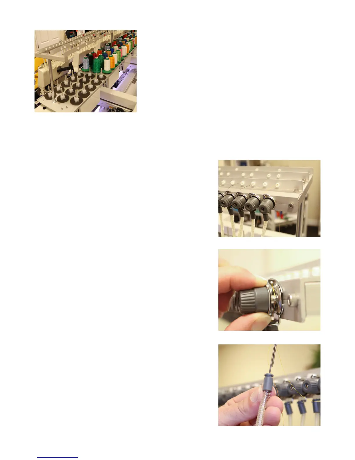 1. Thread each spool through the eyelets on the upper thread