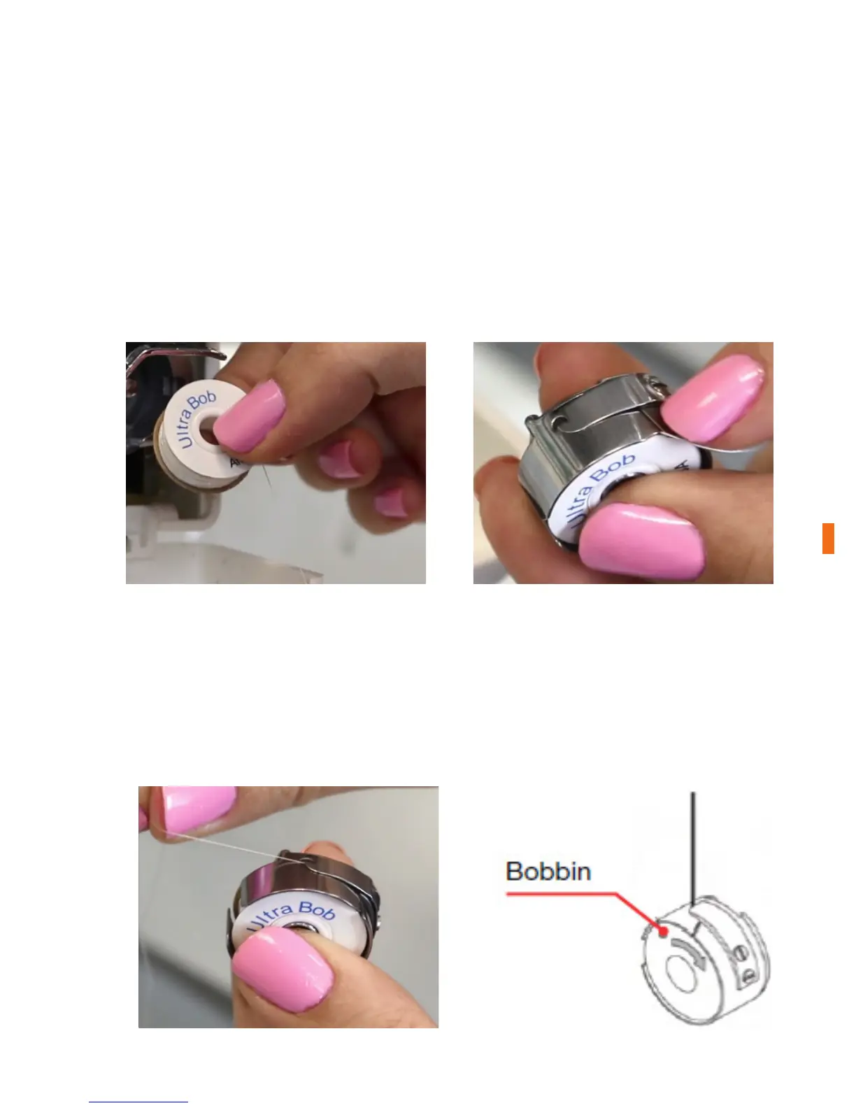 thread. The bobbin thread should still be running clockwise in this direction, and you should see