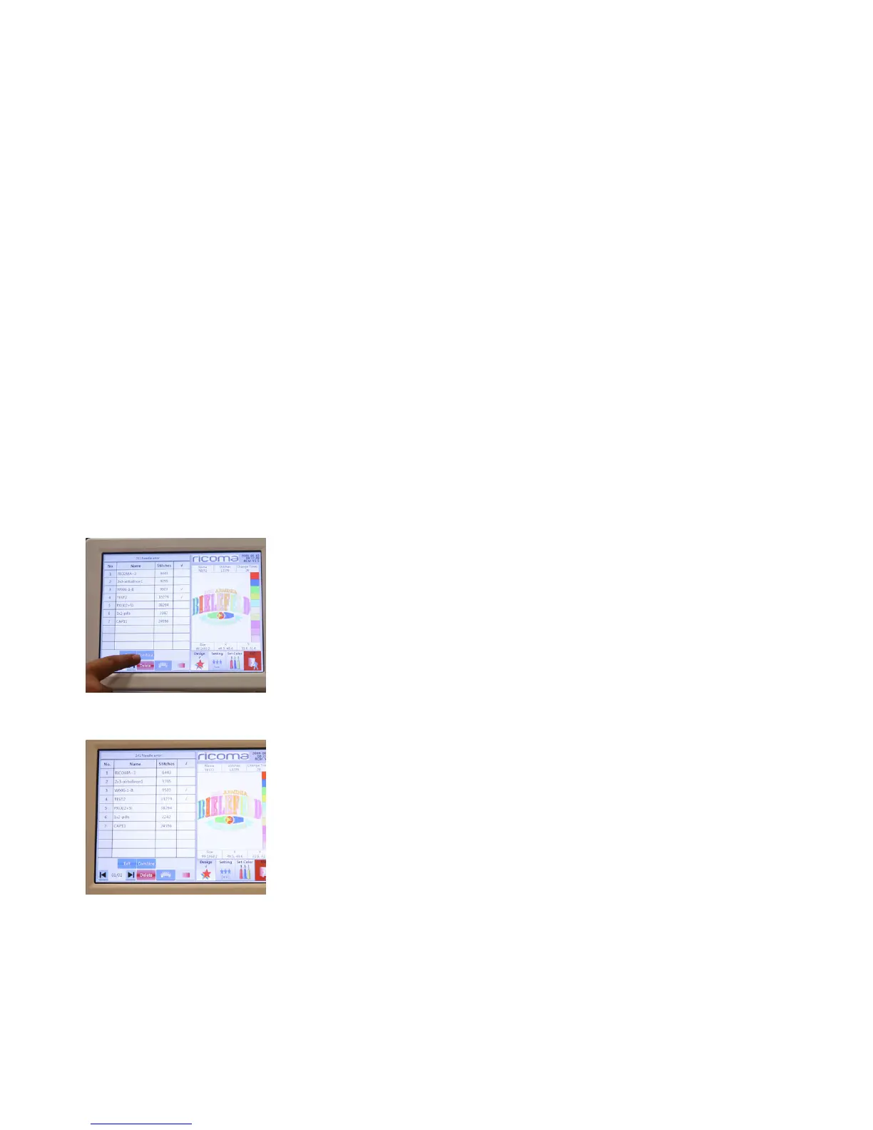 3. Select the design you wish to delete from the list of designs in the machine’s memory.