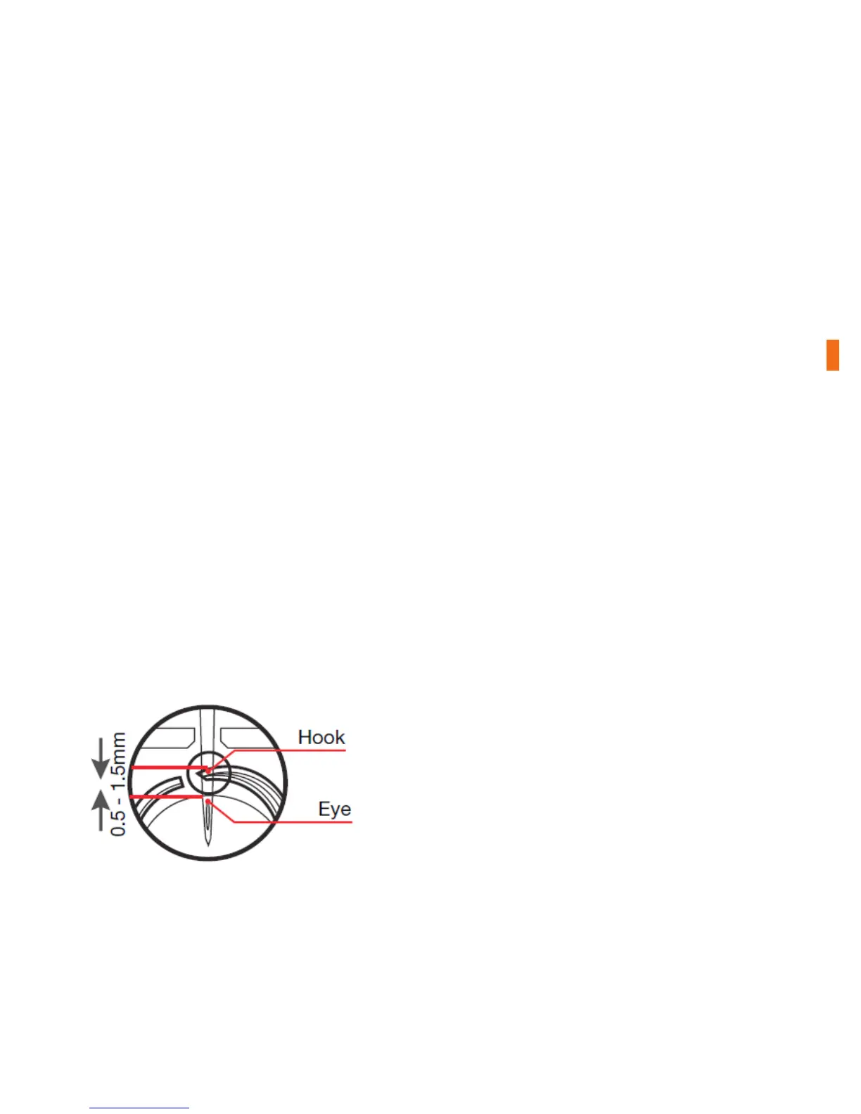 needle and the hook point is out of range, the thread will