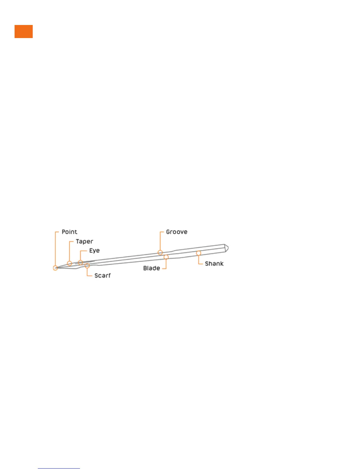 Shaft/blade: The part of the needle that ranges from the end of the shank to the top point of the